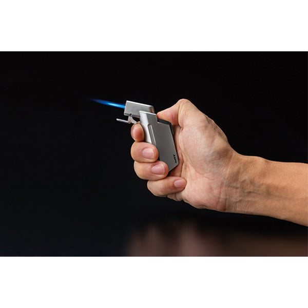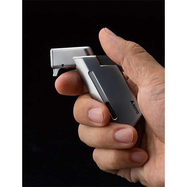 ムダを削ぎ落としエッジの効いた造形に、落ち着きのあるマットシルバーの装いを纏ったマイクロトーチ。