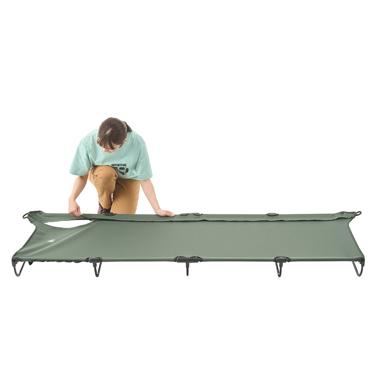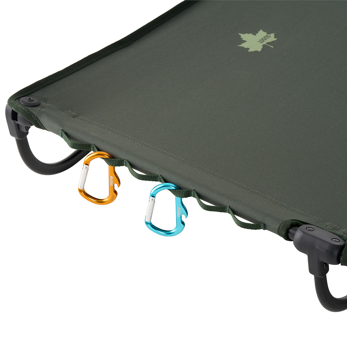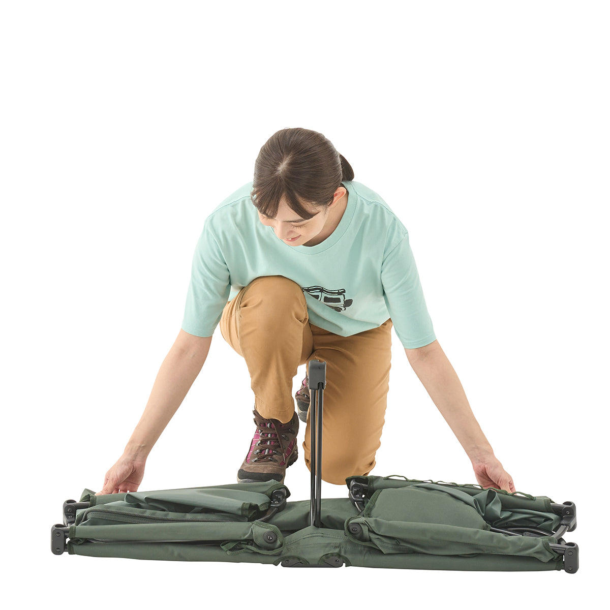 ジッパー開閉組み立て式を採用したローコットは、フレームと生地が一体式のため、手間なく簡単かつスピーディーに設営&撤収できる。