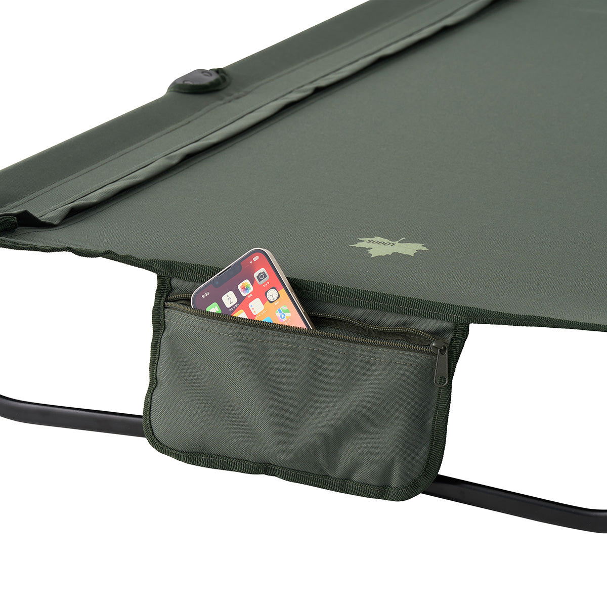 地面からの湿気を防ぎ、地面の凹凸を気にせず眠ることができ、枕元のポケットは簡易的な枕にもなって寝心地も◎