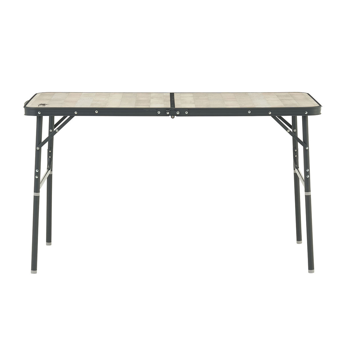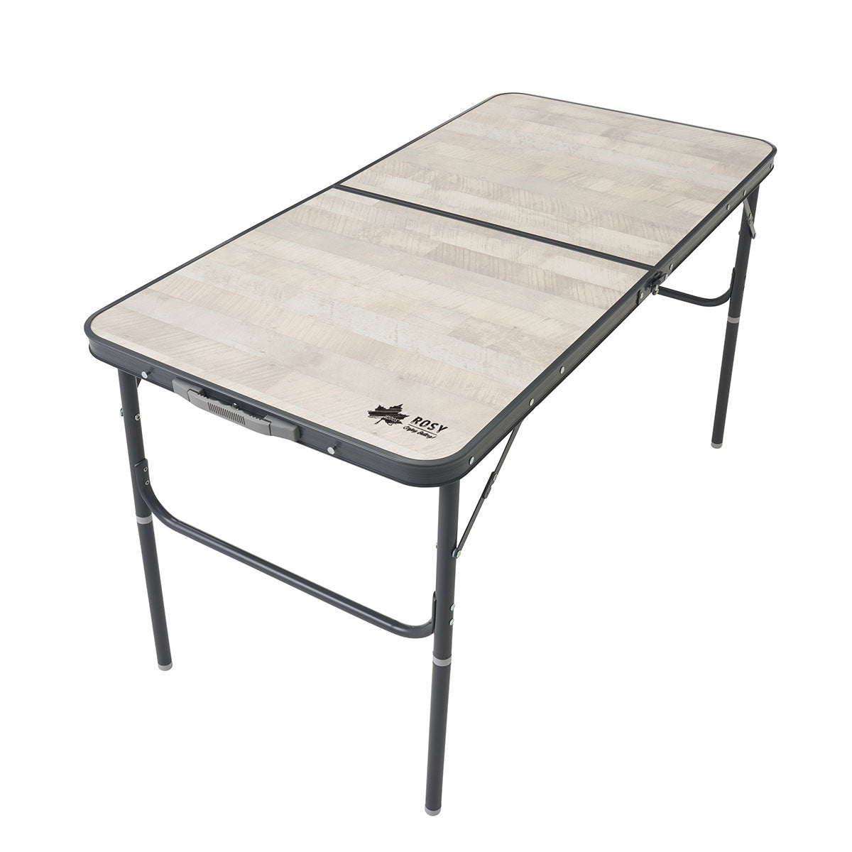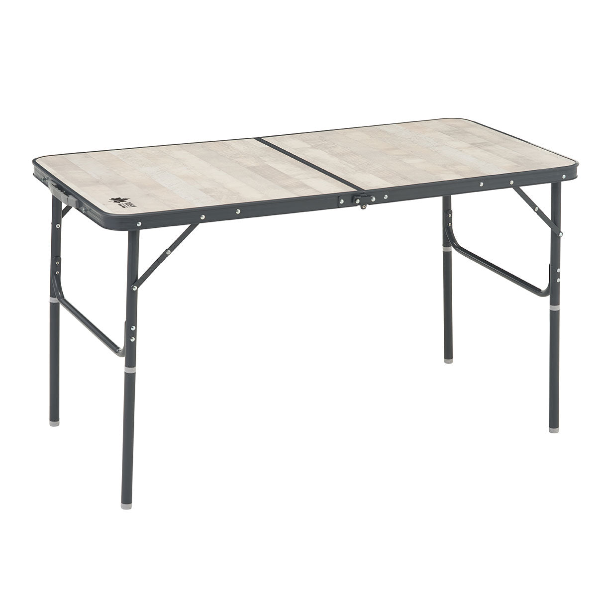 幅約120cmでゆったりと食事を楽しめるダイニングテーブル。高さ2段階調節に対応しており、ローポジション時なら小さなお子様でも使いやすい。収納時はパタンと折りたたんで薄型になるため、運搬や保管の際にも場所をとらないのもポイント。フレームはアルミ製。